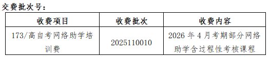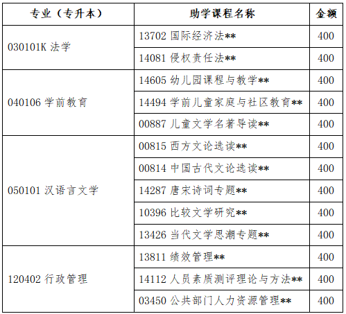 本批次开设的网络助学课程均设置有过程性考核环节,收费标准:400元/科/考期。